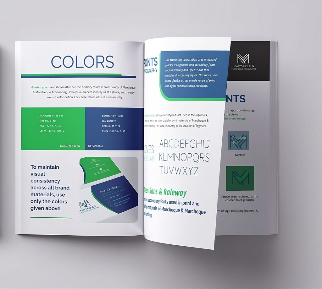 This portfolio showcases brand style guide design projects, including brand guidelines and brand manuals, created to support consistent branding across print, digital, and marketing materials.